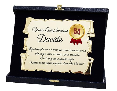 Targa Compleanno Personalizzata | Regalo per chi compie 20, 30, 40, 50, 60, 70, 80 anni | Pergamena Personalizzabile | Auguri (Cofanetto Blu Targa Dorata)