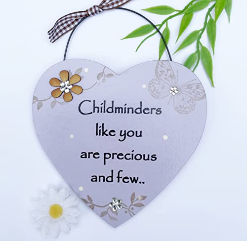 Targa a forma di cuore in legno con scritta in inglese "Childminders like you are precious and few"