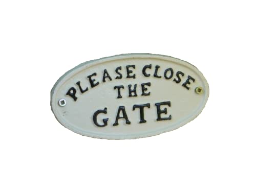 Targa ovale in ghisa, con scritta "Please Close The Gate", colore: Bianco