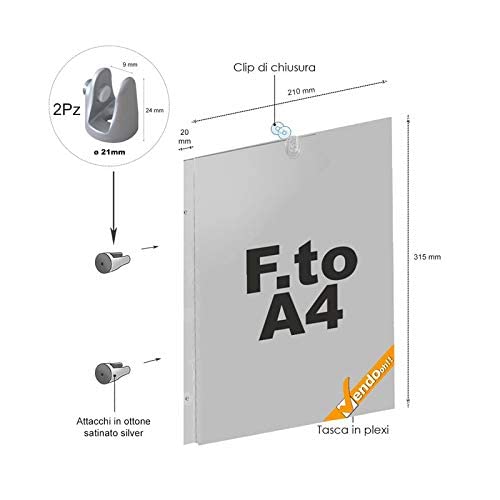 TARGA DA PARETE A BANDIERA COMPLETA DI ATTACCHI A MURO PANNELLO A4 VERTICALE