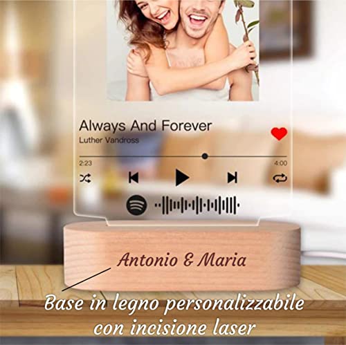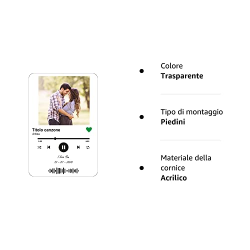 Targa Personalizzata Musica, Cornice Foto in Plexiglass acrilico Trasparente. Targa Regalo per San Valentino. Foto anniversario