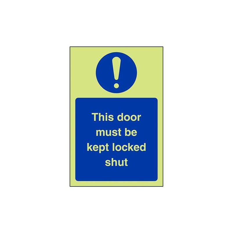 V Safety - Targa in plastica rigida Glow In The Dark This Door Must Be Kept Locked Shut, 100 mm x 150 mm 100mm x 150mm