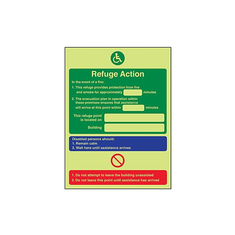 V Safety - Targa in plastica rigida con scrittaGlow In The Dark Refuge Action You Are Located On Building 150 mm x 200 mm 150mm x 200mm