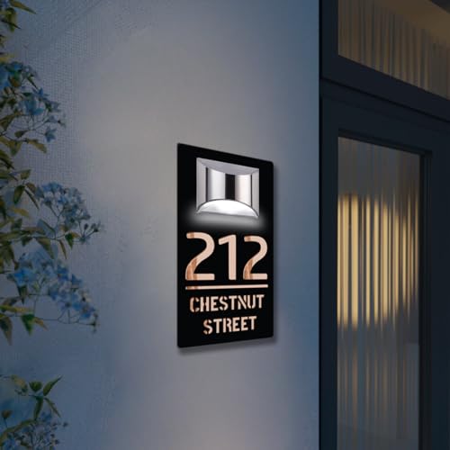 Segnali di indirizzo illuminati per case: questi cartelli illuminati per case sono realizzati in acrilico di alta qualità, impermeabile e durevole, resistente al calore e al freddo, è resistente alle condizioni atmosferiche, garantendo che mantenga la sua eleganza nel tempo. Il design semplice è adatto a qualsiasi stile architettonico.