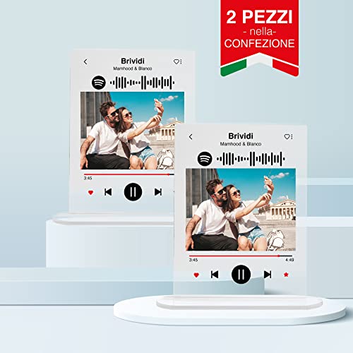 TARGA SPOTIFY DI COPPIA 2 pezzi CON BASI INCLUSE modello 2022 Cornice personalizzata con nome canzone artista e foto Idea regalo fidanzati compleanno anniversario festa mamma papà Natale San Valentino