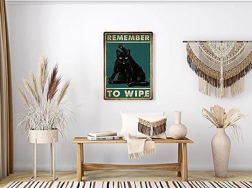 Targa vintage in metallo con scritta in lingua inglese "Remember to Wipe Black Cat" (lingua italiana non garantita)