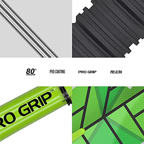 La confezione contiene: 1 x custodia per freccette, 3 x barili per freccette, 3 x Pro Grip albero corto verde lime, 3 x Yohkoh progettato numero 6 voli, 3 x 26 mm punta in acciaio argento