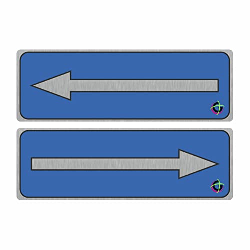 TARGHE ADESIVE ALLUMINIO SATINATO - freccia blu - Targhette Autoadesive, Impermeabili Lavabili, uffici, Pub, Banche, aziende, ufficio (20x5 cm)