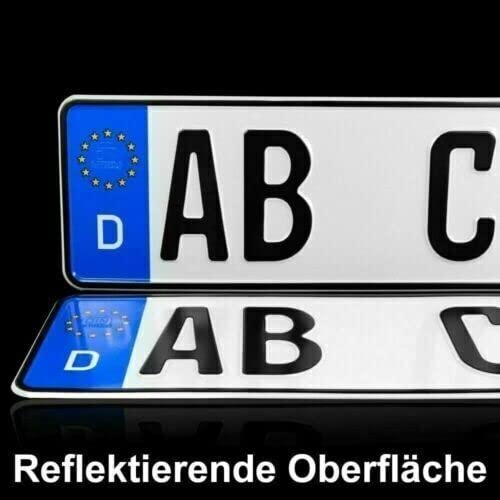 Targhe di produzione tedesca, con timbri di prova del produttore e dell'azienda di stampaggio, targa DIN 520 x 110 mm, con superficie riflettente.
