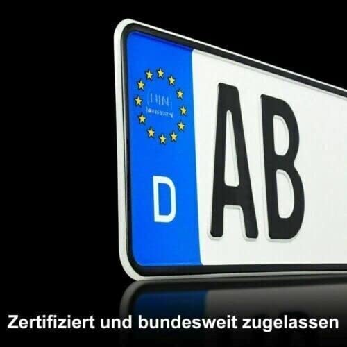 2 targhe automobilistiche standard EU per tutte le marche di auto, 520 x 110 mm, con stampa personalizzabile per immatricolazione ufficiale.Adatto per autovetture, autocarri, rimorchi o portabiciclette di tutte le marche.