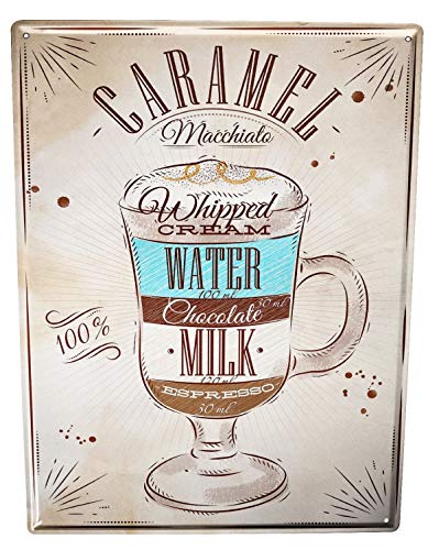 Targhe Cartello Targa in Metallo Decorazione della Parete 30x40 cm Ristorante Cucine Caramello Latte ricetta