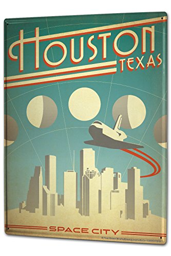 Targhe Cartello Targa in Metallo Decorazione della Parete 30x40 cm Viaggi Cucina Aeromobili orizzonte Houston Texas Spazio Città