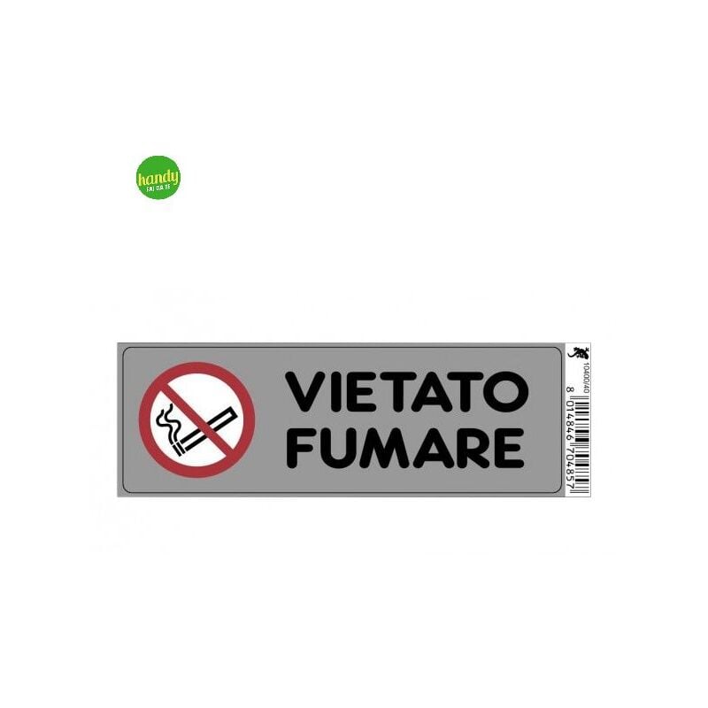 Dalla linea di articoli dedicati alla segnaletica a marchio Tre Emme, questa TARGHETTA ADESIVA, di colore grigio, comunica il divieto di fumare.