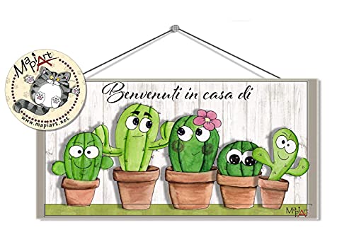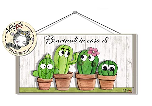 Targhetta benvenuti famiglia cactus personalizzabile con nomi, disponibile da 2 a 5 componenti della famiglia