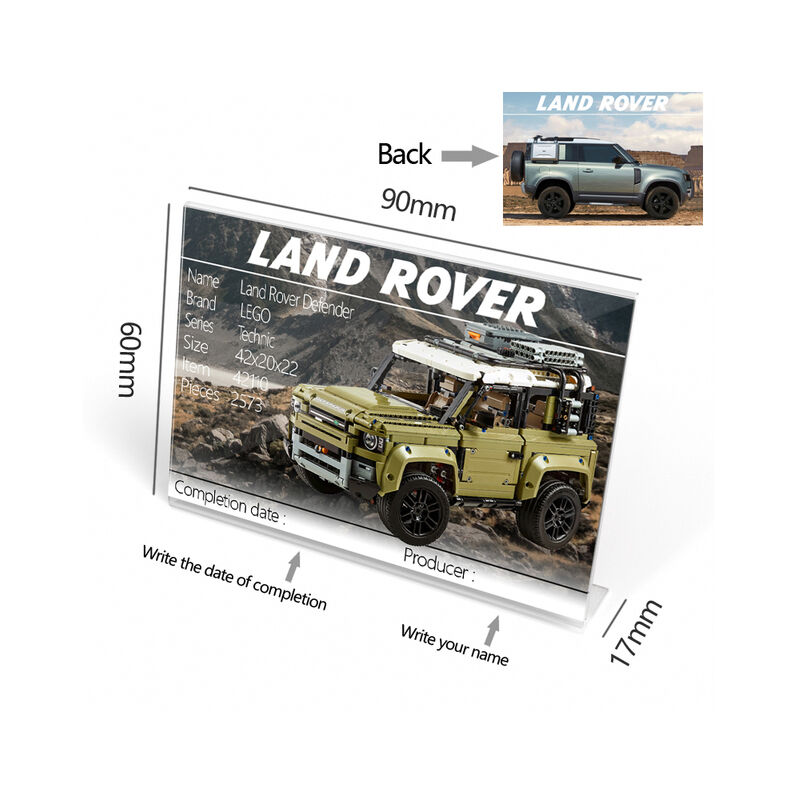 La targhetta espositore in acrilico per Lego 42110 Land Rover Defender Building Blocks mattoni giocattoli targhetta personalizzata,42110 Defender