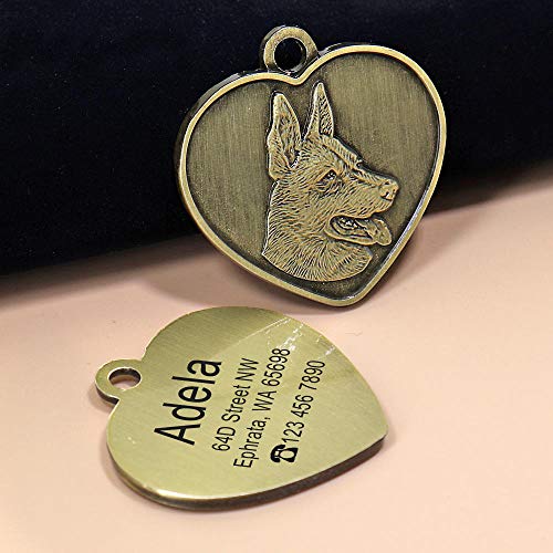 Targhetta identificativa per cani personalizzata con incisione anti-smarrimento per cani e gatti targhette con nome a forma di cuore ciondolo per animali domestici-Pastore tedesco-M