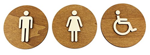 Targhetta per WC, in legno di noce, di colore marrone, per il bagno delle donne e degli uomini, Legno, Damen+herren+behinderten, Ø 24cm
