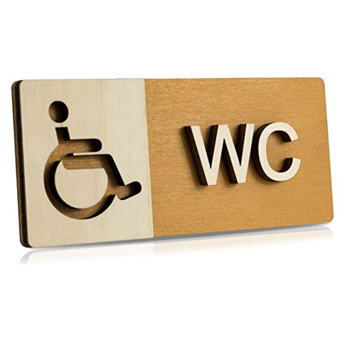 Targhetta per WC in vero legno con pittogramma per WC, targhetta per porta, uomo e donna (disabile)