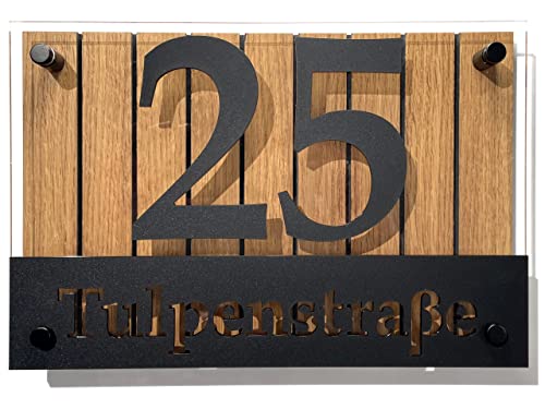 Targhetta per numero civico, personalizzabile, in legno di quercia, plexiglass 3D, design personalizzato (motivo a lamelle 2)
