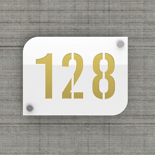 Targhetta con numero civico/casa bianca di design con sfondo personalizzabile - Modello URBAN - Oro