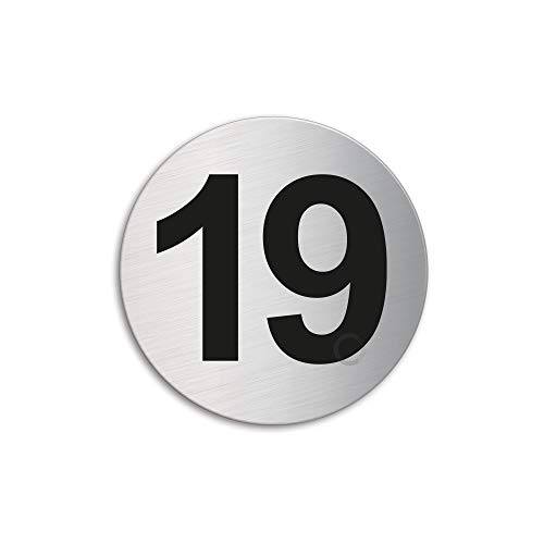 Targhetta Numero 19 | Targa Cartello acciaio inossidabile spazzolato Ø 60 mm autoadesiva