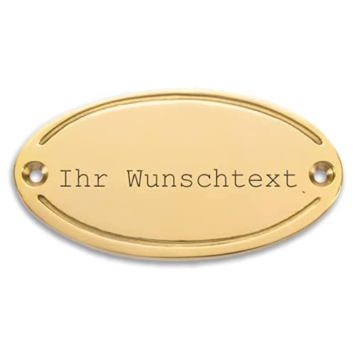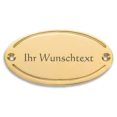 Targhetta in ottone con incisione individuale - 99 x 50 mm, ovale - targhetta per campanello, targhetta con nome, targhetta incisa