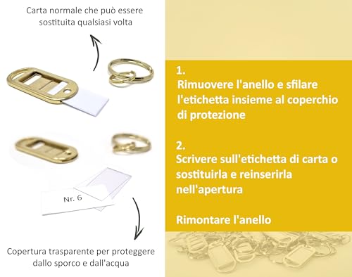 ★ I portachiavi sono dotati di una scheda di scrittura integrata protetta da un coperchio di plastica trasparente. Il foglio interno può essere modificato e riscritto a seconda delle esigenze. A differenza dei tradizionali cartellini in plastica, il metallo molto robusto e leggero promette una durata estremamente lunga ed è quasi infrangibile.