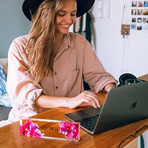 Targhetta da scrivania personalizzata per ufficio porta nome da scrivania design su vetro acrilico trasparente accessori da scrivania per ufficio idea regalo per colleghi Boss donne moglie (rosa-rosa)