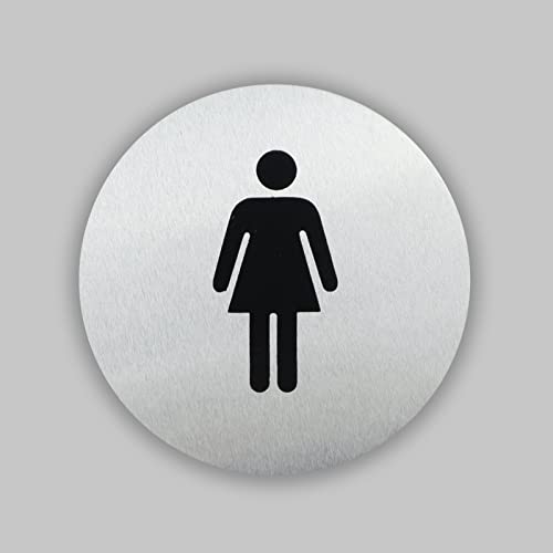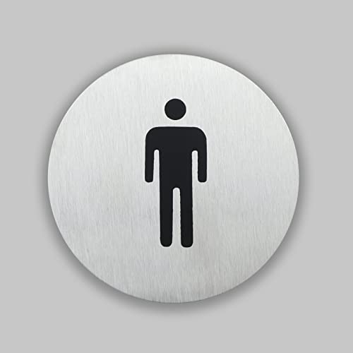 Targhette Segnaletiche Autoadesive per WC in Acciaio, Set di 4 Cartelli Adesivi: Uomo + Donna + WC + Divieto di Fumare, per Muro e Porta di Bagno, Toilette e Ufficio (Rotondo 2)