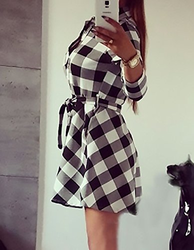 Vestiti Donna Eleganti Da Cerimonia Manica Lunga Risvolto Vestitini Single Breasted Vestito Casuale Linea Ad A Vintage Classica Quadretti Hippie Autunnali Invernali Corti Camicia