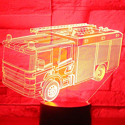 TARIZPPG 3D Illusion Night Light LED Night Light Fire Engine Car con 7 colori di luce per la lampada della decorazione domestica Visualizzazione straordinaria Illusione ottica-Fire_Engine_Car