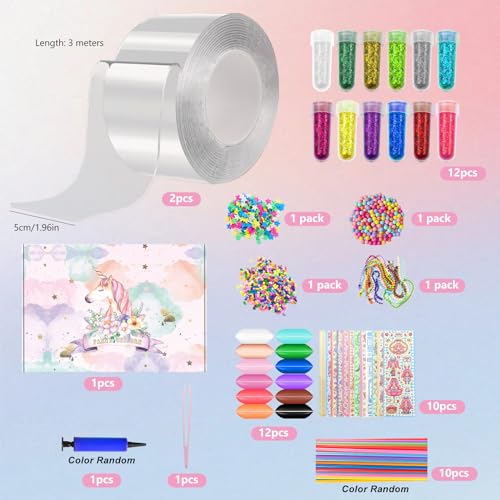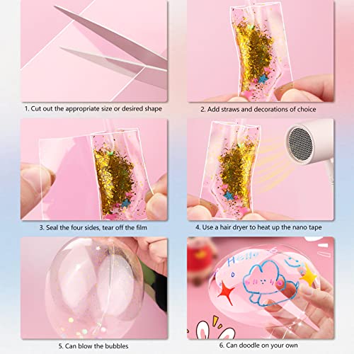 TARKDAK Nano Tape Bubbles Kit 64PCS Magico Nastro Nano Kit Adesivo Multiuso Biadesivo per Bolle Soffiabili con Glitter, Plastilina Ultraleggera, Forbici, Ciabatte, Braccialetti, Stelle