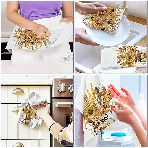 Tarklanda Strofinacci Cucina Autunno Zucca, Canovaccio Cucina Autunnali Girasole Foglia d'Acero, Asciugamani da Cucina per Cucine Domestiche per Natale e Giorno del Ringraziamento 2 Pezzi 45 x 70 cm