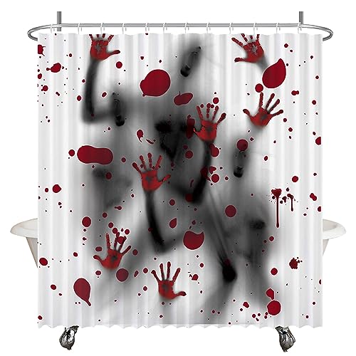Tarklanda Tende da Doccia Halloween Tenda per Doccia Horror 180 x 200 cm Tenda da Bagno Impronte di Mani insanguinate per Decorazioni a Tema Horror Halloween Impermeabile con 12 Ganci