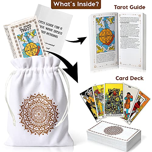 Tarocchi con cartoncini classici con guida per tarocchi, 78 pezzi, per principianti Rider Waite Tarocchi (edizione inglese), Tarocchi originali con sacchetto di velluto (bianco)