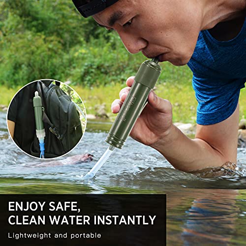 Taruor Filtro Acqua Campeggio, Cannuccia Filtro Acqua Filtro Acqua Sopravvivenza per la Preparazione alle Emergenze Campeggio Viaggiare Zaino in Spalla (Verde)