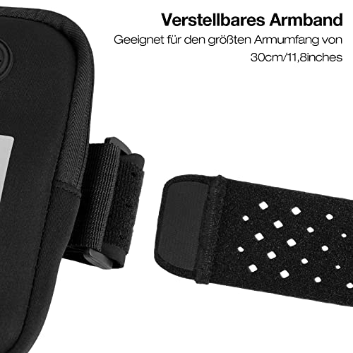 Tasca da braccio per cellulare, per cellulari fino a 17 cm di dimensione, per corsa, allenamento, jogging e fitness. Con logo riflettente e porta jack per cuffie, Nero