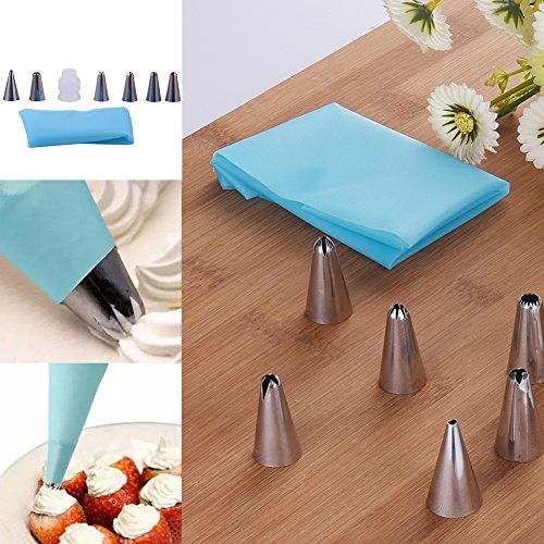 Tasca da pasticcere in silicone con 6 bocchette in acciaio inox, per decorare torte