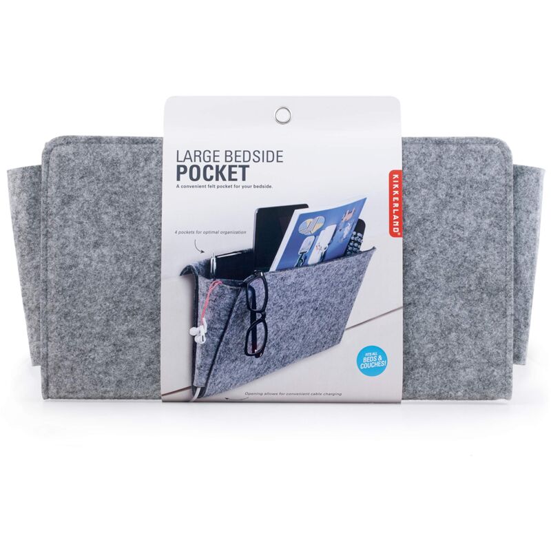 Kikkerland, Tasca porta oggetti per bordo letto Questa borsa grande e sicura è il luogo perfetto per mettere tutto il necessario al fianco del letto per la conservazione. Un'apertura alla base per il cavo di ricarica per dispositivi elettronici. Adatto a qualsiasi divano o letto. Vincitore nel progetto di progettazione organizzativa di storage x 2014 della Kikkerland.