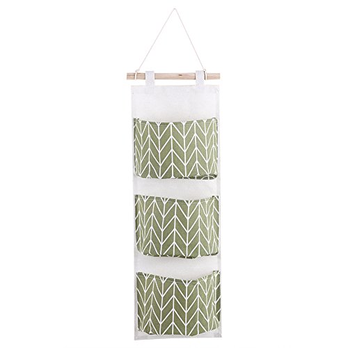 Tasca Portaoggetti - per Appendere 3 Tasche Borse da A Parete in Lino E Cotone Porta Pouch Camera Letto Home Office Organizer(Verde)