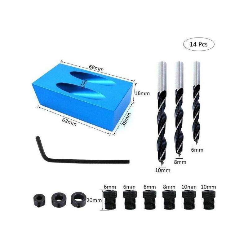 Dima per Fori a Tasca con Punte di Trapano 15° Falegname Posizionatore 14 pz Descrizione prodotto 14 Pezzi Dima per Fori a Tasca con Punte di Trapano Angolare 6/8 / 10mm Set Utensili per Perforatrice Obliqui su Legno da Falegname(blu) Specifiche: Materiale: lega di alluminio Colore: blu Dimensioni: 6,2x3,8x1,8 cm (circa) Dimensioni adattatore trapano: 20 mm / 0,79 pollici (altezza), 6/8/10 mm (diametro del foro) Dimensioni del posizionatore del foro: 6 mm / 0,23 pollici, 8 mm / 0,31 pollici, 10 mm / 0,39 pollici Caratteristiche: Materiale in lega di alluminio: non facile da arrugginire e rompersi. Localizzatore di fori obliqui a 15 gradi: ti aiuta a praticare facilmente un foro obliquo. Adattatore trapano 6/8/10 mm: soddisfa le diverse esigenze di perforazione e sostituisci rapidamente l'adattatore. Dimensioni tascabili e peso ridotto: facile da afferrare e comodo da usare. Prestare attenzione: Si prega di consentire un errore di 1-3 cm dovuto alla misurazione manuale. Assicurati che