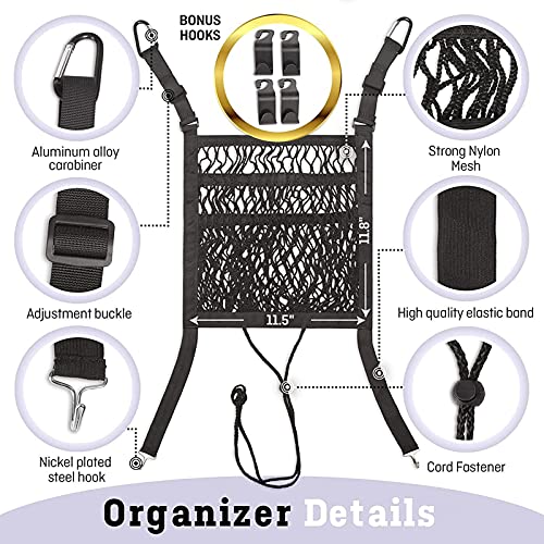 Materiale di alta qualità: questo è un organizzatore universale in rete per riporre il seggiolino auto. Il tessuto a rete è accuratamente realizzato in nylon non elastico ed elastico robusto e di alta qualità, resistente all'abrasione e durevole.