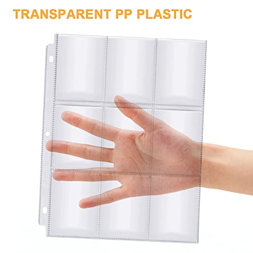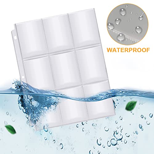 1800 tasche Baseball Card Sleeves, Double Side 9-Pocket Trading Card Sleeve 3 fori Game Card Sleeves Fit 3 anelli per il commercio Baseball Game Business Cards 100 pagine
