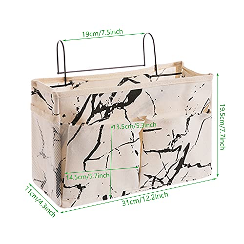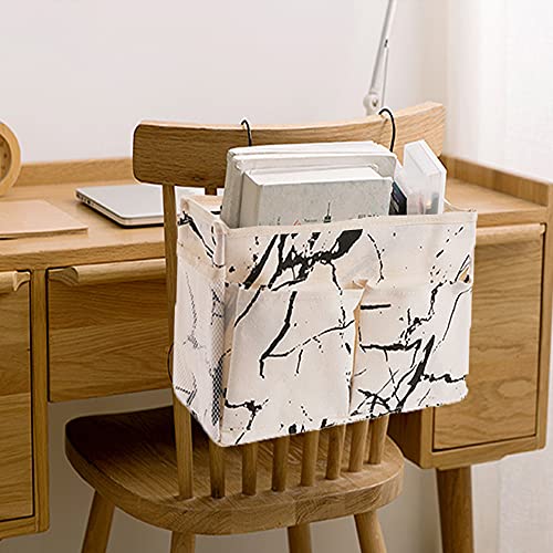 Tasche da Comodino, Borsa da Appendere al Comodino, Organizer Sospesa Portaoggetti, con Gancio per Appendere, per Casa, Ufficio, Scuola, Libri, Riviste, Telefoni Cellulari, Cuffie(Marmo Bianco)