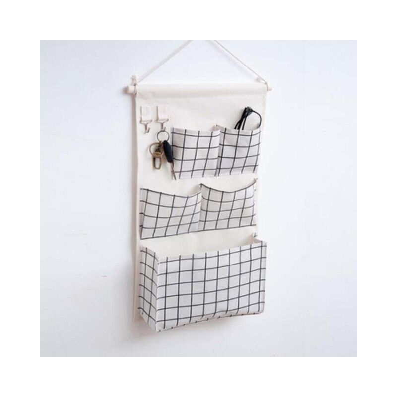 Informazioni sul prodotto:Nome del prodotto: borsa da appendere a cinque tascheMateriale: cotone e linoColore: quadrato nero, quadrato grigio, quadrato bianco, triangolo bluDimensioni: vedi la figura sotto per i dettagli Caratteristica:1. Una borsa per molteplici usi, è disponibile una varietà di stili e colori;
