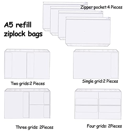 A5 Tasche Raccoglitore ad Anelli,12 Pezzi Tasche per Raccoglitore, Borsa a Fogli Mobili,Formato A5 Tasche Raccoglitore,6 Fori Cartelle a Cerniera Organizer Documenti Cartella di Banconote