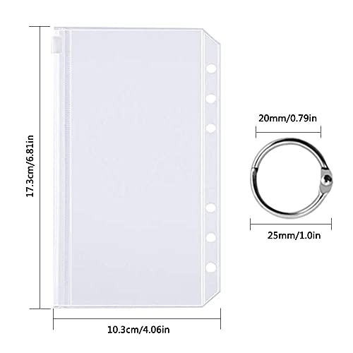 15 tasche per raccoglitore formato A6 con 20 anelli larghi da 2,5 cm di diametro, maxin 6 fori impermeabili con chiusura lampo, raccoglitore a fogli sciolti per quaderni, documenti, carte, foto
