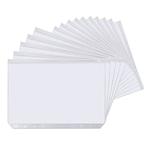 Tasche per raccoglitori perforate con cerniera da 15 pezzi, 10 pezzi A6 + 5 pezzi formato A5, raccoglitori ad anelli a 6 fori, cartelletta portadocumenti per documenti, sacchetti trasparenti