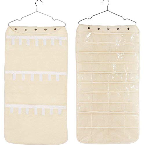 40 Tasche e 20 di Velcro Armadio Organizzatori Gioielli Ciondolo Doppi Lati Hanging Tabs Organizzatore Ciondola Pendenti Gioielli di Stoccaggio (1,Beige)