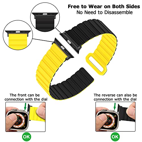 Tasikar Cinturini Compatibile con Cinturino Apple Watch 49mm 45mm 44mm 42mm, Cinturino Loop Magnetico Silicone [Indossabile Due Lati] per Apple Watch Ultra Series 9 8 7 6 5 4 3 2 SE (Nero-giallo)